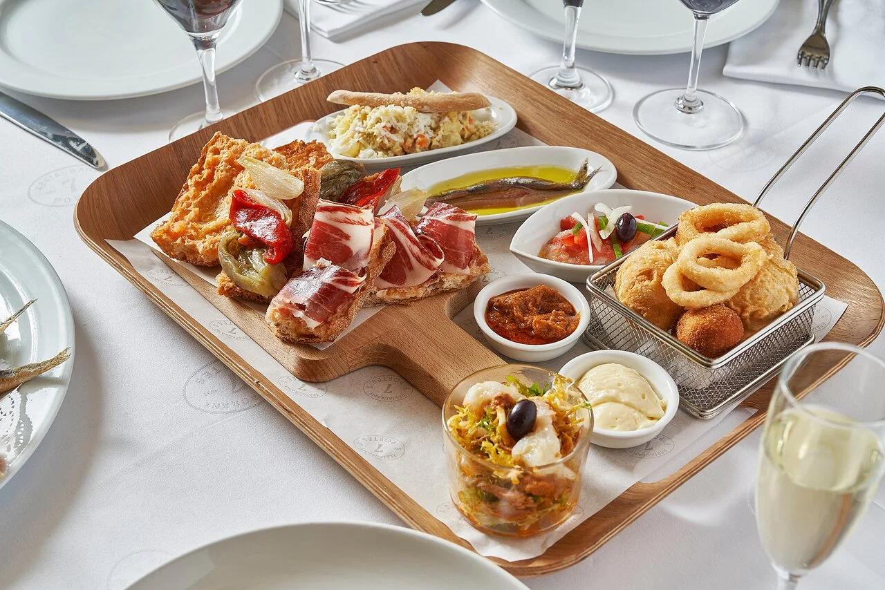 El menú de 7 Portes combina tradición y creatividad, ofreciendo platos icónicos como la paella de mariscos, el suquet de peix y la famosa crema catalana. Cada receta se elabora con ingredientes frescos y de alta calidad, respetando técnicas culinarias transmitidas de generación en generación.